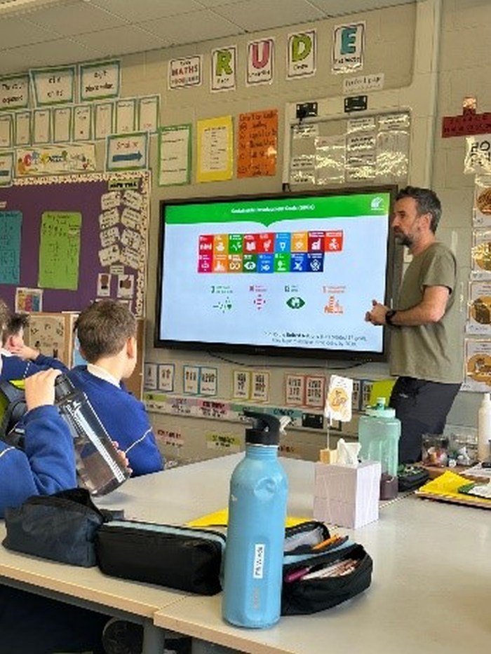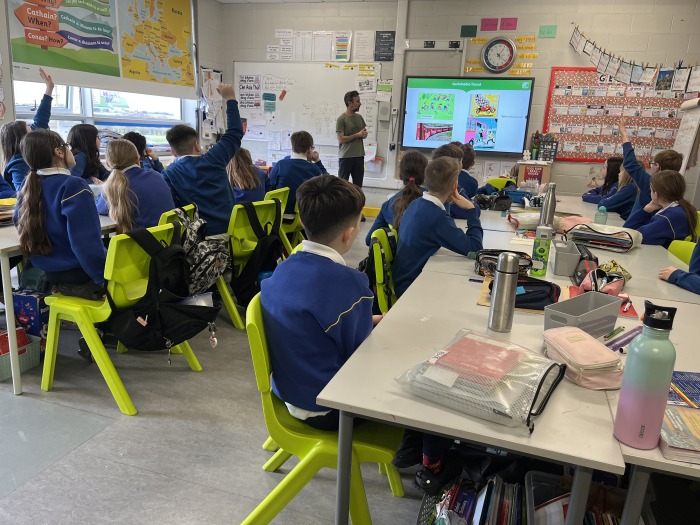 In early February, Ciaran Hussey conducted two Sustainable Communities workshops with both 5th classes. The first workshop focused on Reduced Inequality, serving as a baseline for the Sustainable Communities project. Pupils explored concepts such as climate inequality, travel inequality, and other examples of social and environmental inequality.