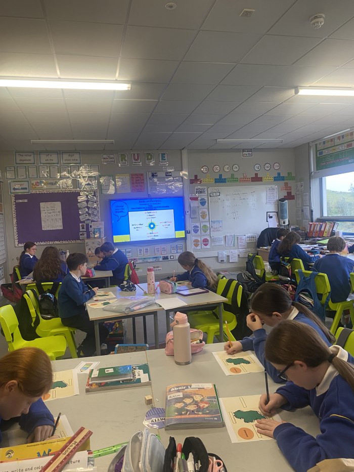 Bíonn cúpla ranganna ag déanamh Gaeilge & abhár eile (CLIL)