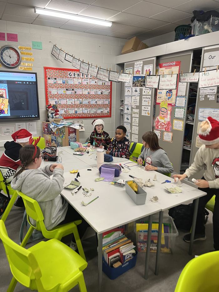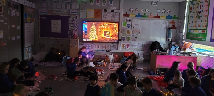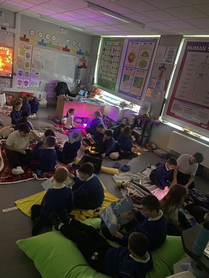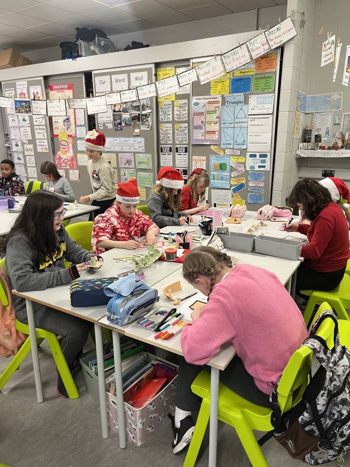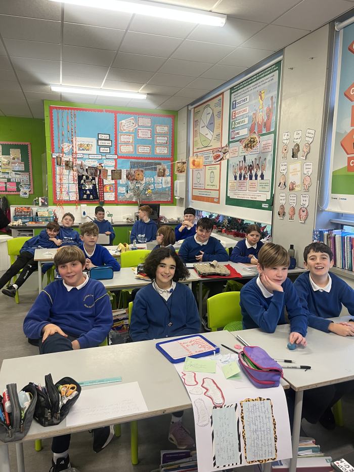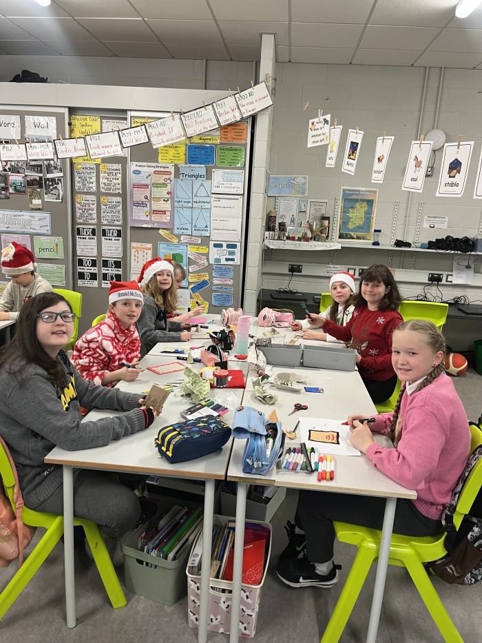 What a busy and eventful term 1 it has been! After a lot of preparation and practice , 5th class performed their Christmas play “Straw and Order” to a packed hall of parents and family members on Wednesday December 18th. They were terrific and deserve great credit for their efforts and enthusiasm. We enjoyed using watercolours to create “Christmas Cars” and we used our fine motor skills to make mini wool hats during art. We had a few sessions of tag rugby on Wednesday mornings with the Buccaneeers when the weather permitted and also did some folk and Irish dance during this term. Both fifth classes paired up with the senior infants to create a campfire reading experience using an array of soft furnishings, candles and fairy lights. It was magical for the younger children. Fifth class pupils did a great job both reading and interacting with them! We wrote narrative stories too during December. Most opted for a Christmas theme and were quite intriguing! The Wellbeing Committee made sure we were fully entertained with music and Irish quizzes done through the medium of Zoom. We also participated in a fun online Maths Quiz. We are looking forward to another jam-packed term!