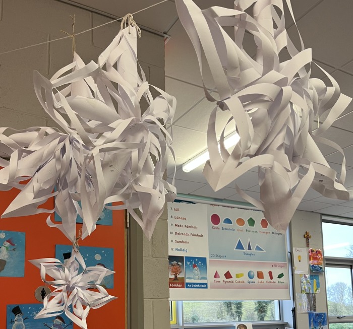 Fourth Class have had a very busy and productive First Term. We learned about the local history, in particular, the Meehambee Dolmen, which we were lucky to get to visit with Martin Curley. We have completed some lovely pieces of Art. We made clay monsters, drew snowy streetscapes and made some Christmas paperchain decorations. We took part in a Science webinar called “How can concerts create mini-earthquakes?”. For the month of December, we took part in lots of exciting activities organised by the Wellbeing Committee! We practised hard for our Christmas play, “It’s a Census, get me out of here”. It was a huge success! We are looking forward to lots more exciting learning activities in the term ahead.