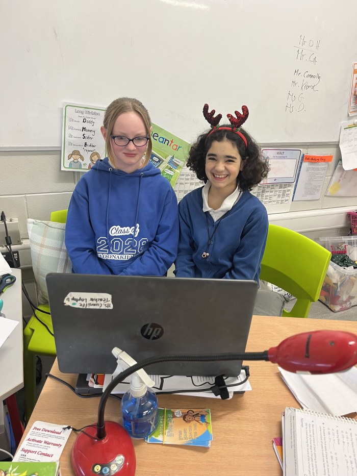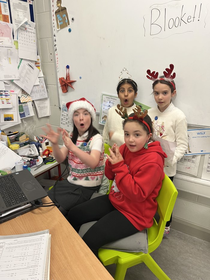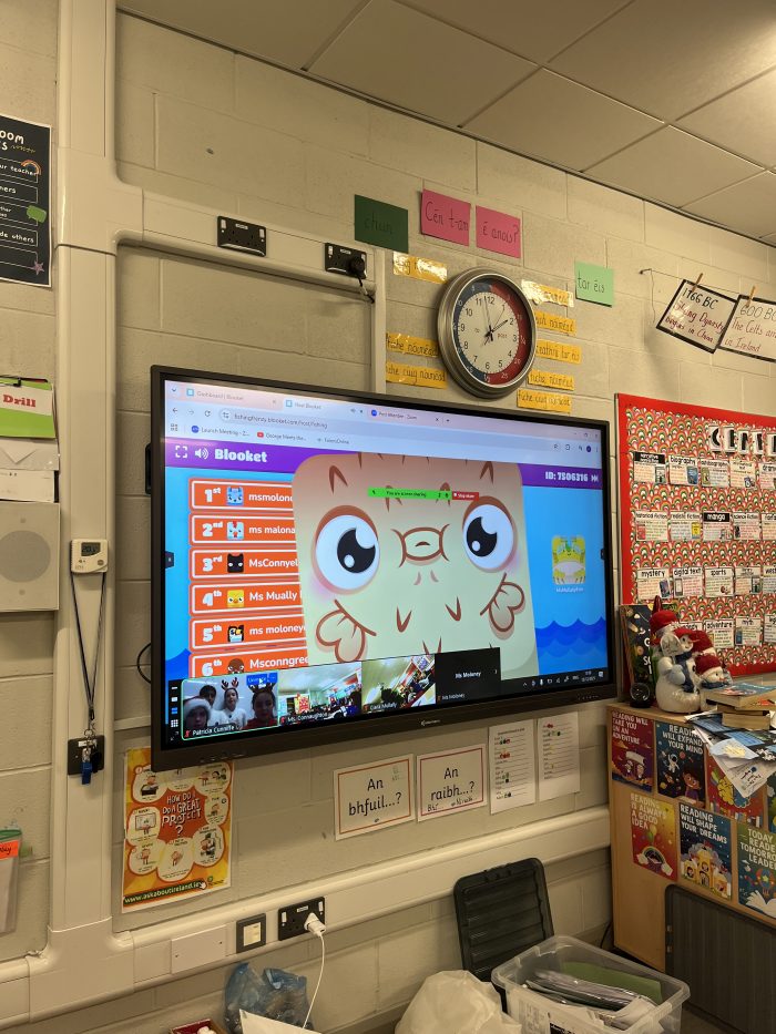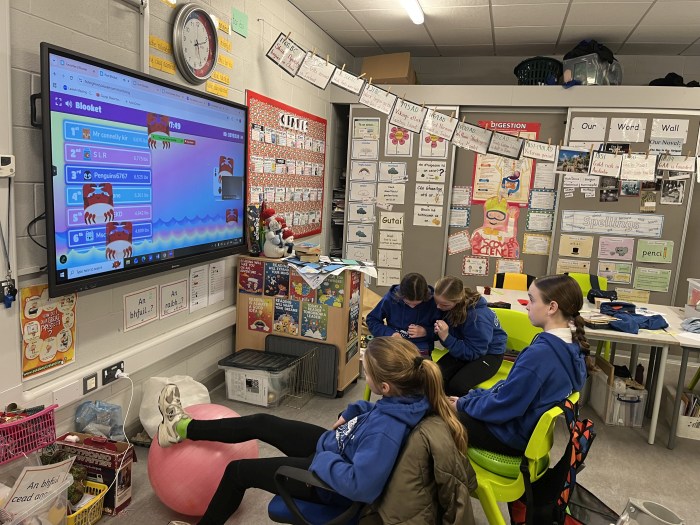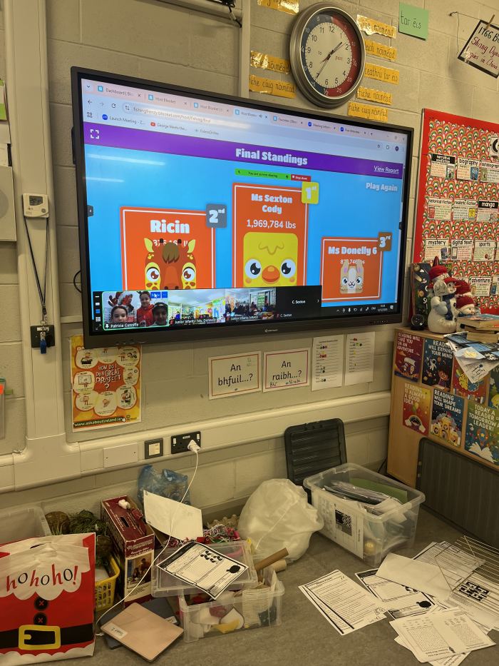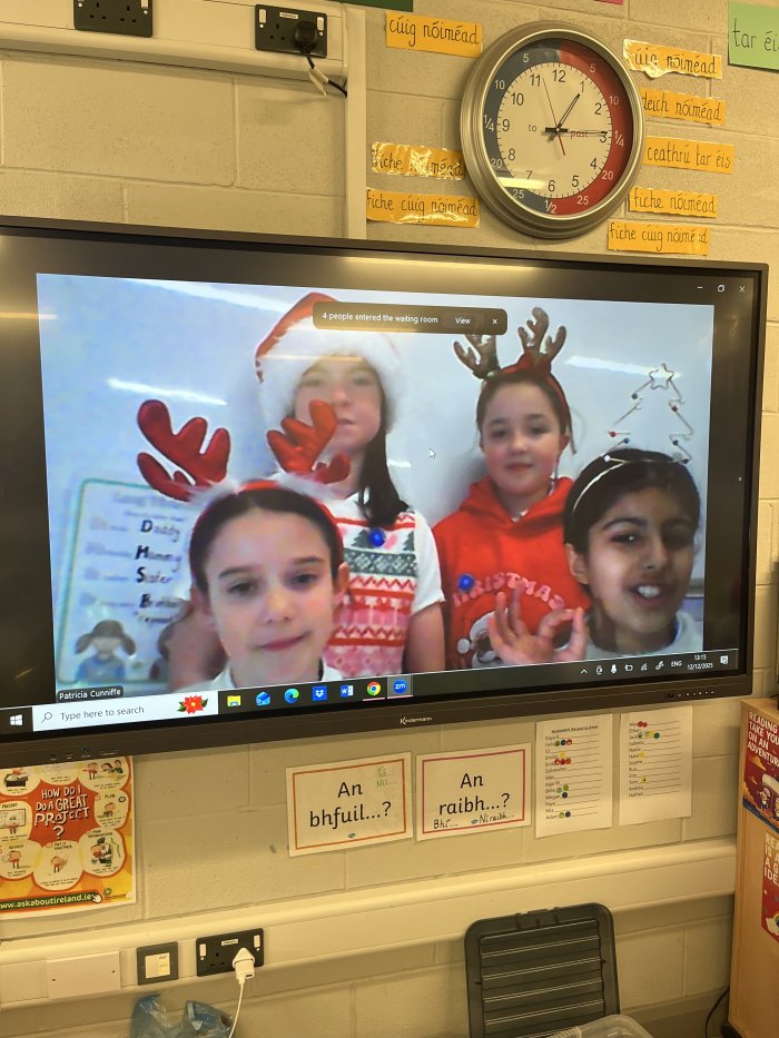 On Friday 12th December, the Tech Team held their very first Blooket style quiz. It went down a treat and all classes got to participate at some point of the day. The theme was Christmas inspired to tie in with our Annual Advent Calendar which also featured spot prizes for members of staff on that day. Fourth class girls Ellie, Zoe, Aanvi & Cara ably presented the quiz to the junior classes through the medium of Kahoot. They even sang everyone out with a lively version of Jingle Bells!! Andrea & Sophie then took on the task of presenting to 3rd-6th classes. They too, were excellent! Well done to all.
